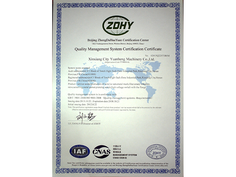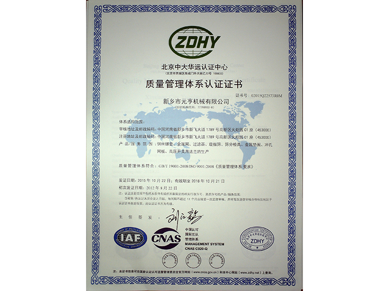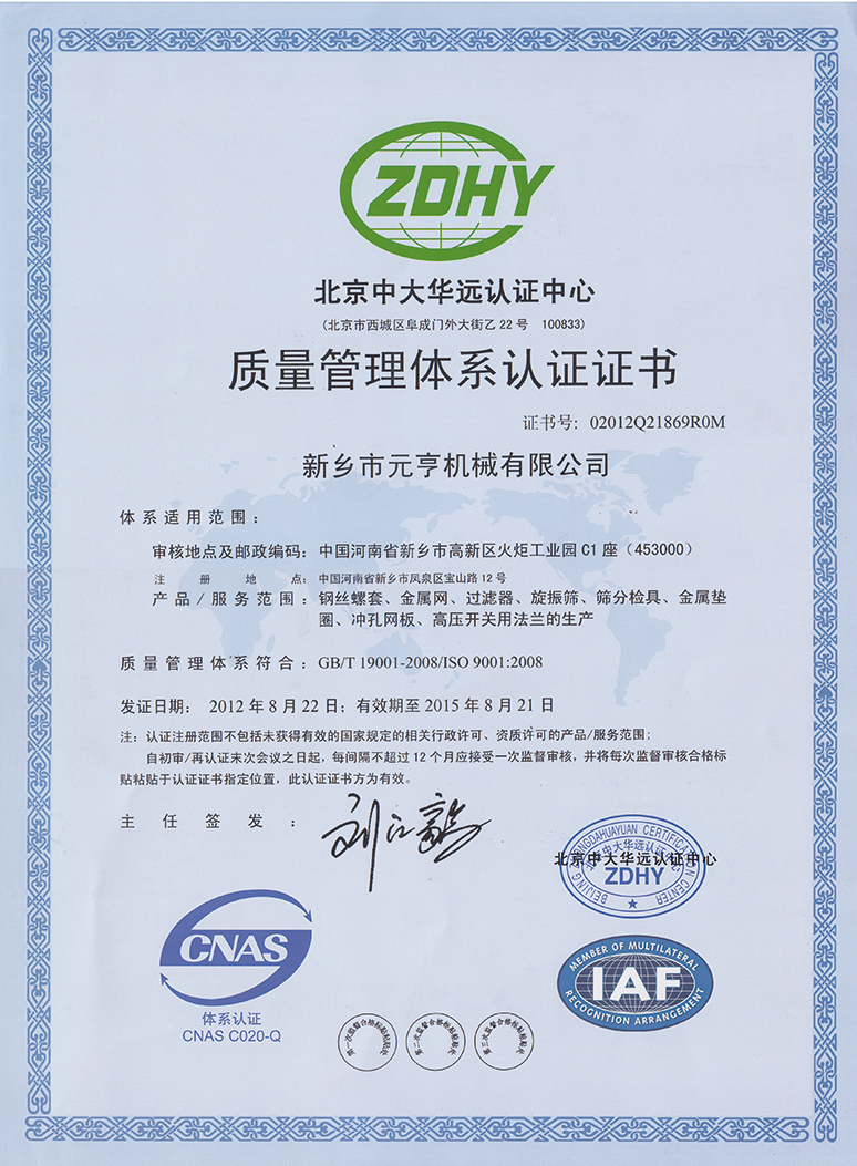 質(zhì)量管理體系認(rèn)證證書(中文)