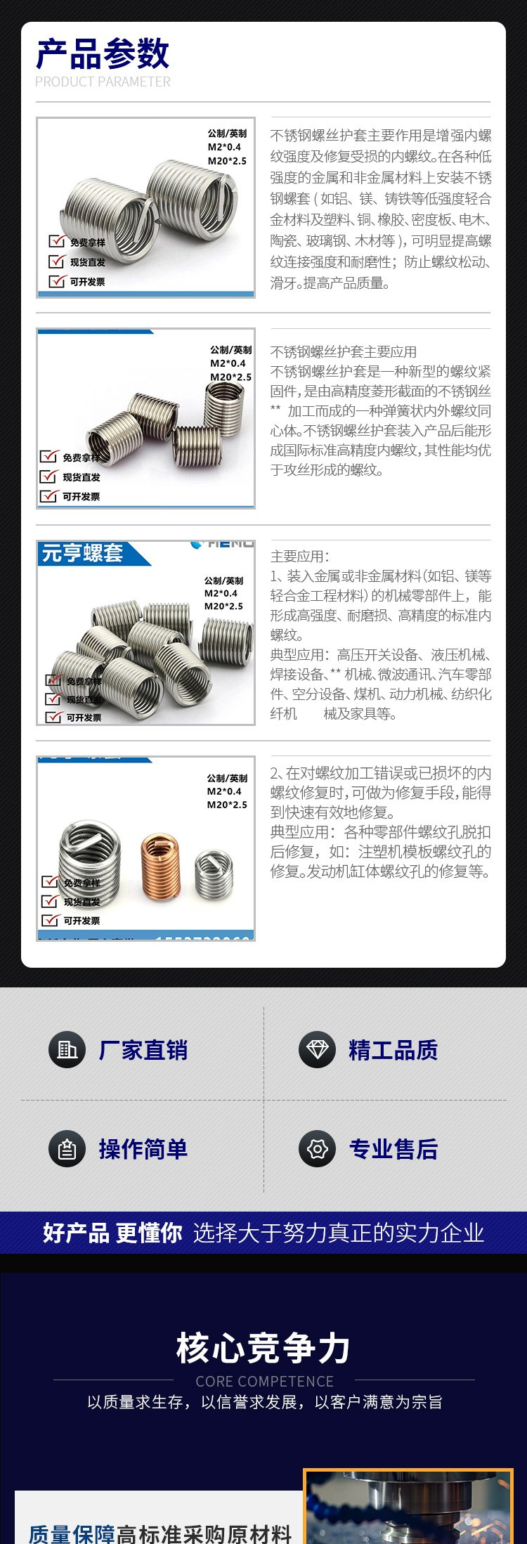 螺紋護(hù)套 316 鋼絲螺套 彈簧套 元亨